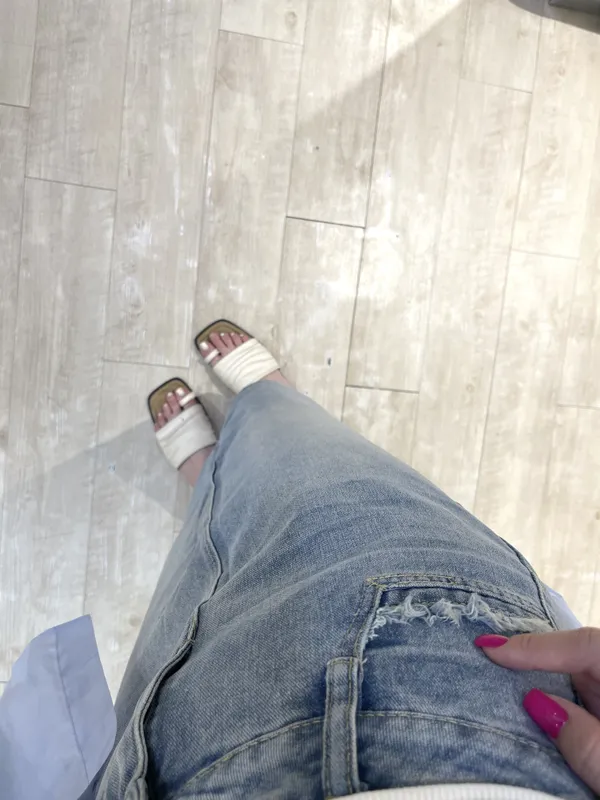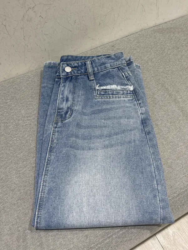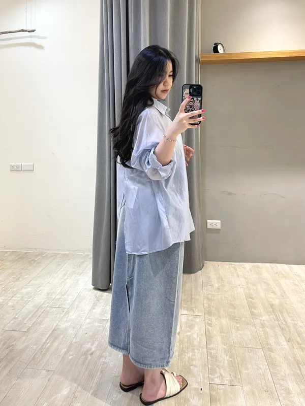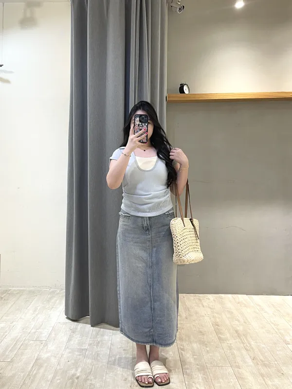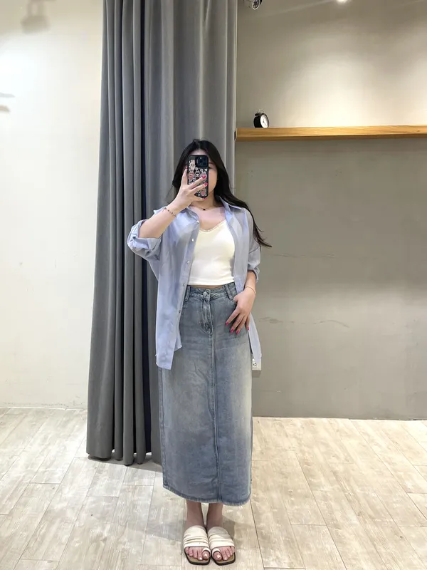 一字口袋鬚鬚牛仔長裙