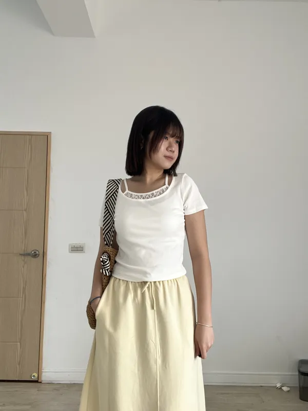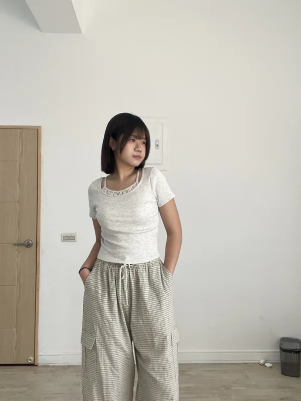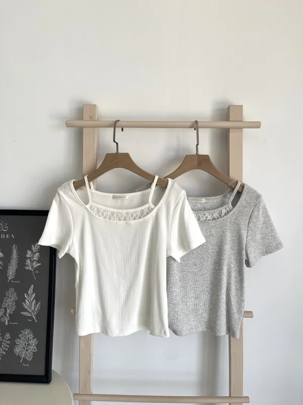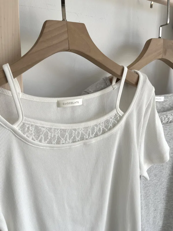 胸前拼接蕾絲上衣