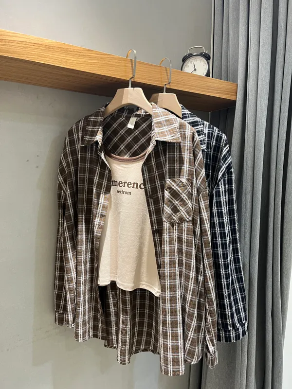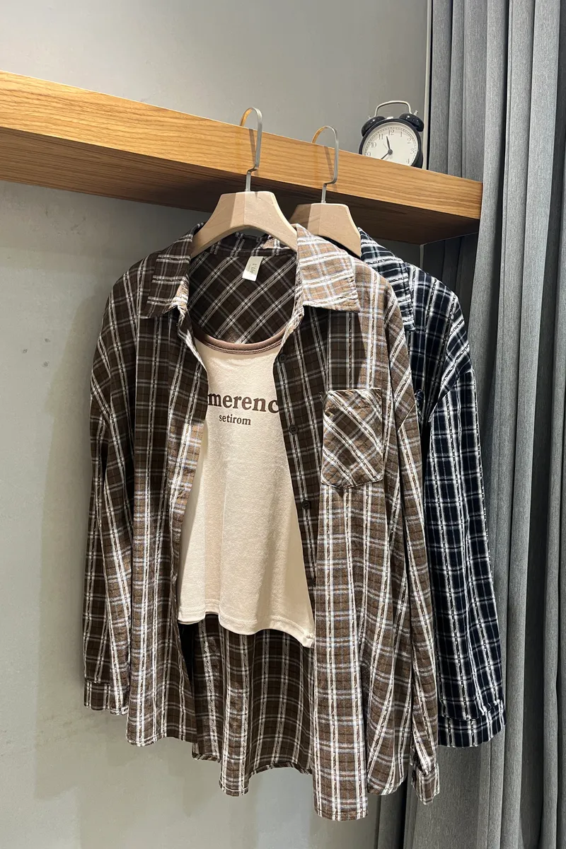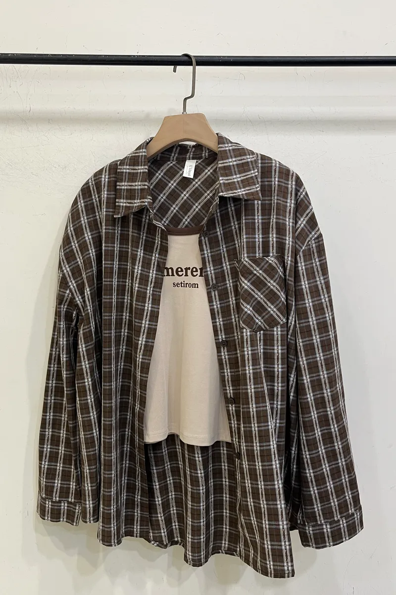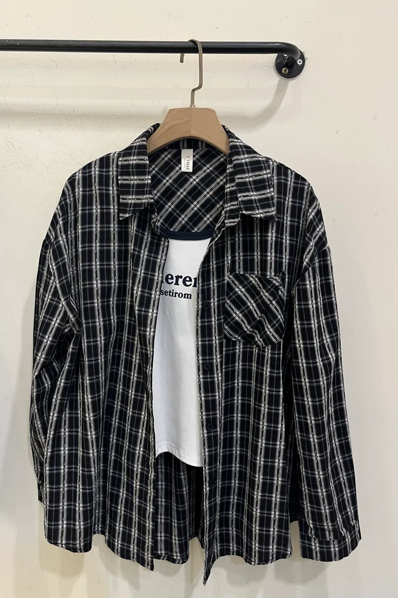 細節格子襯衫真兩件