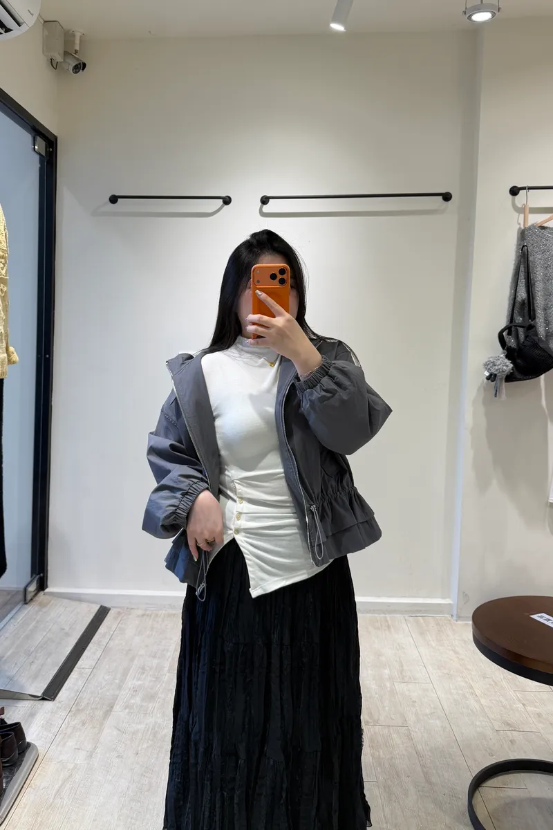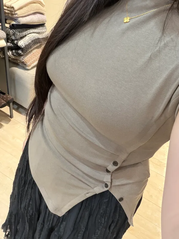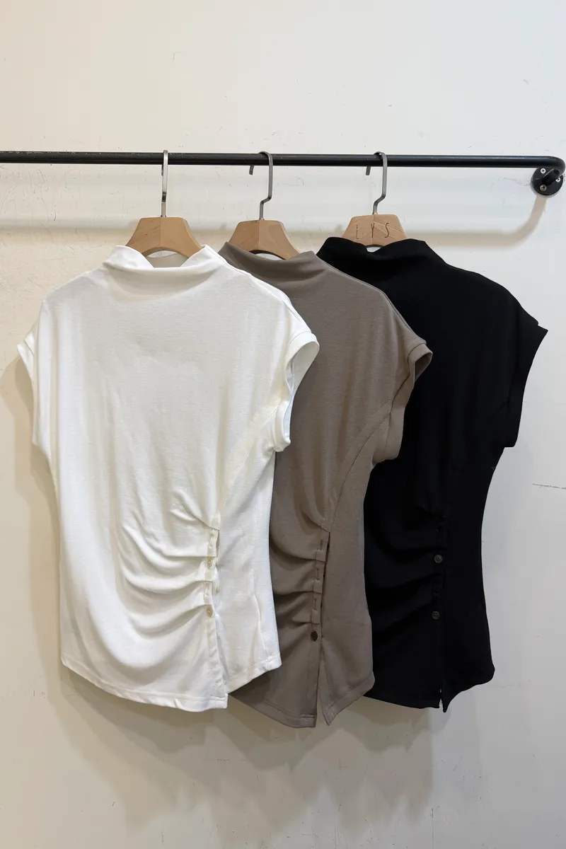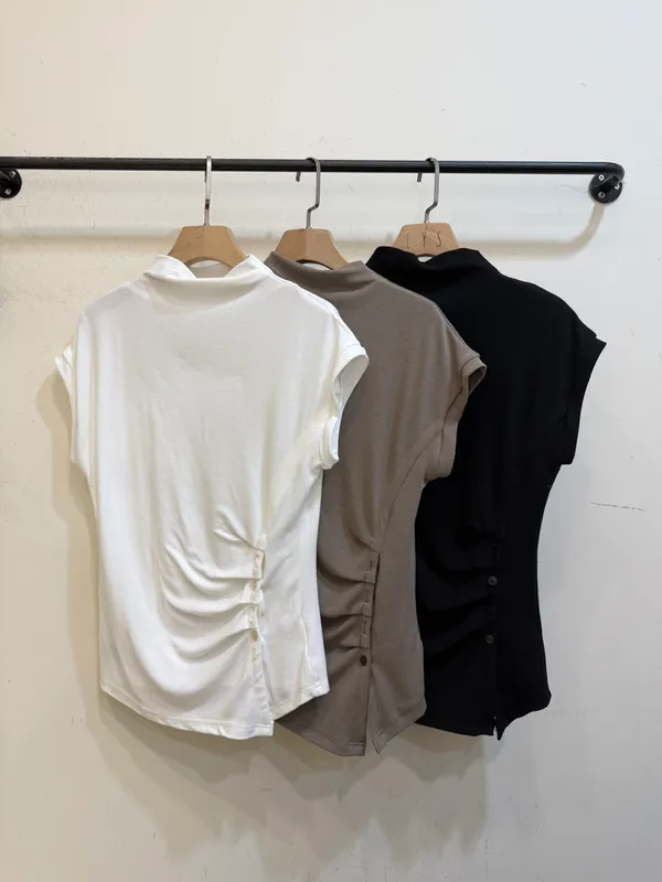 左腰排釦立領彈力上衣
