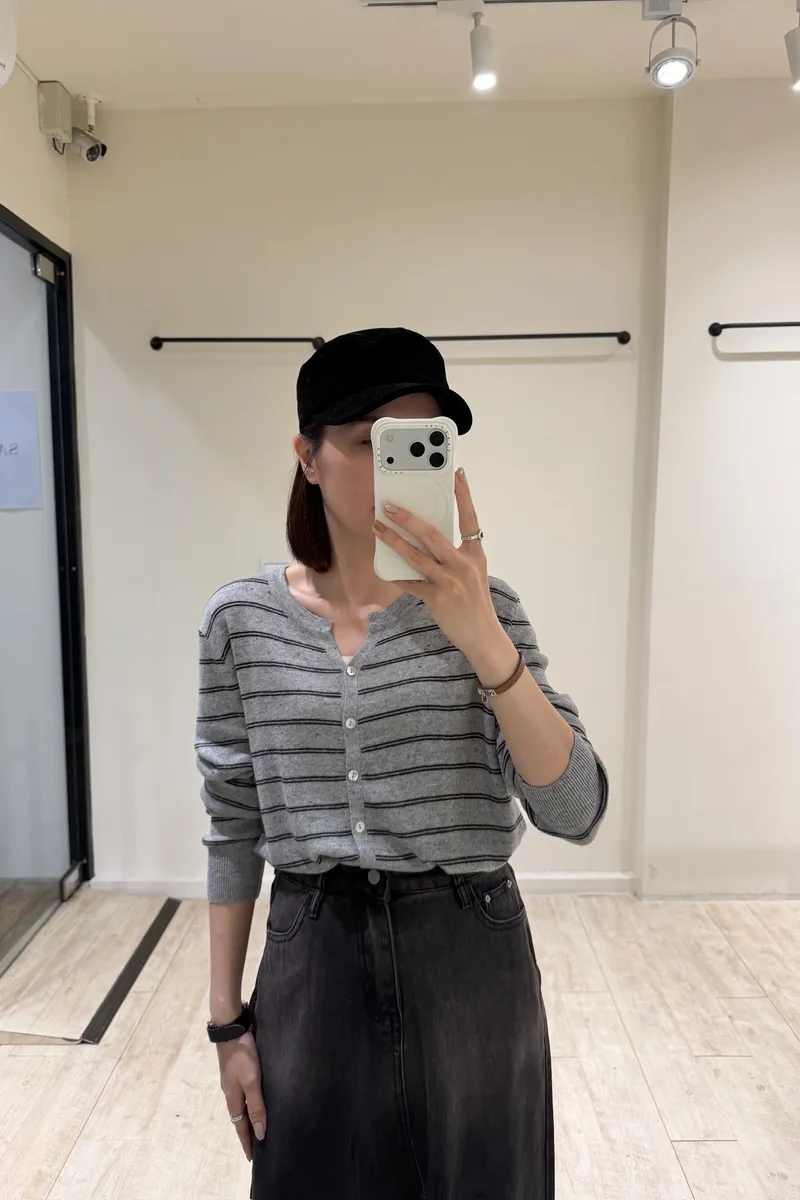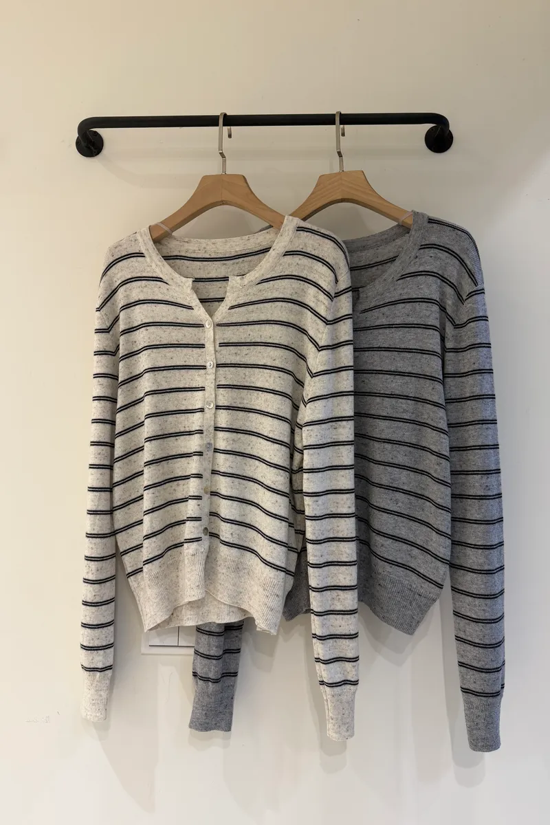 花紗條紋V領上衣