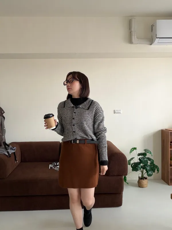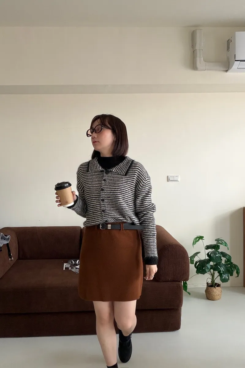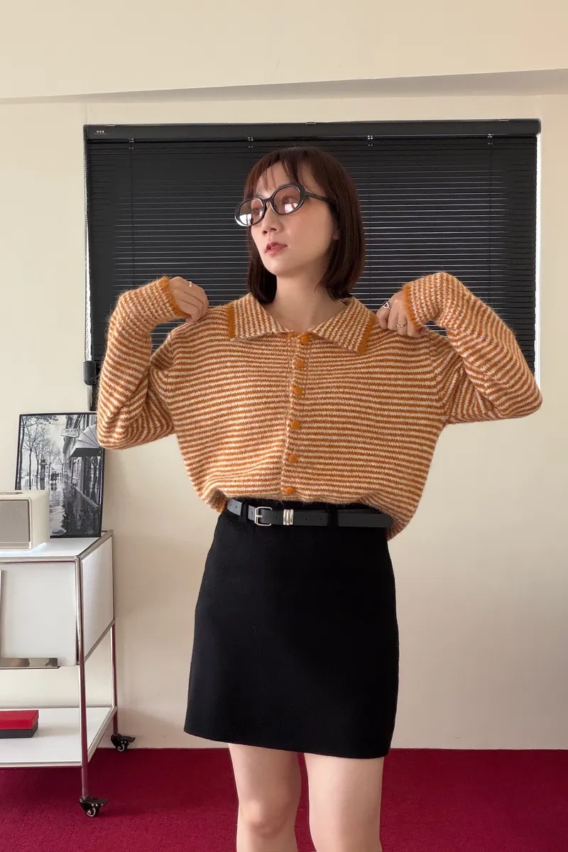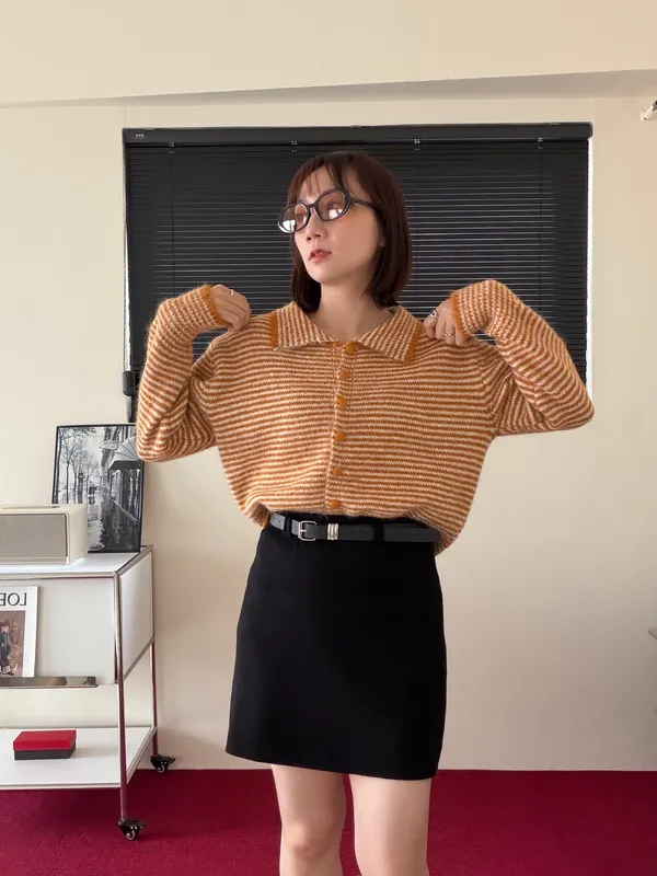 鋸齒條紋排釦毛衣