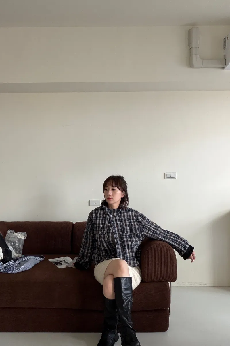 高級格紋呢感鋪棉外