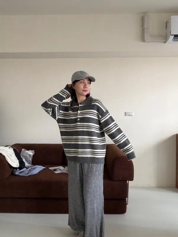 慵懶條紋寬毛衣