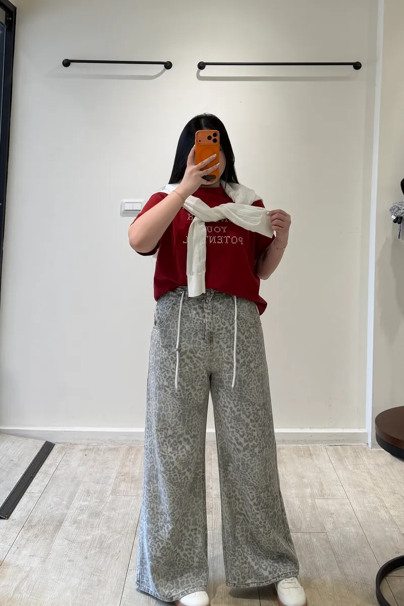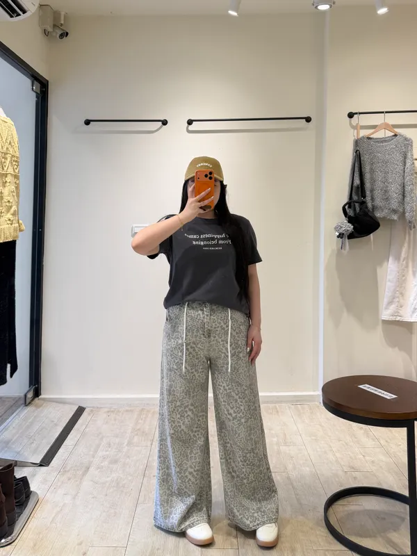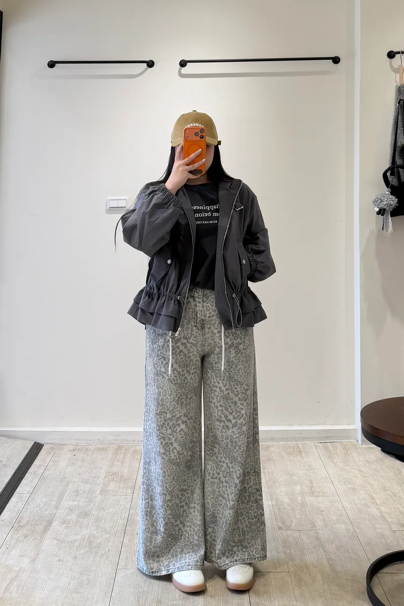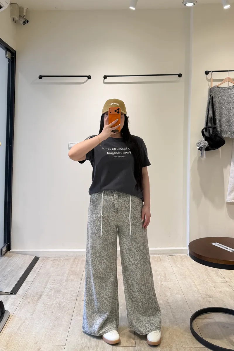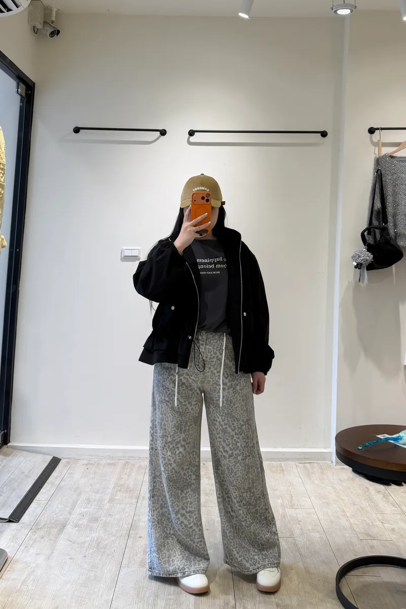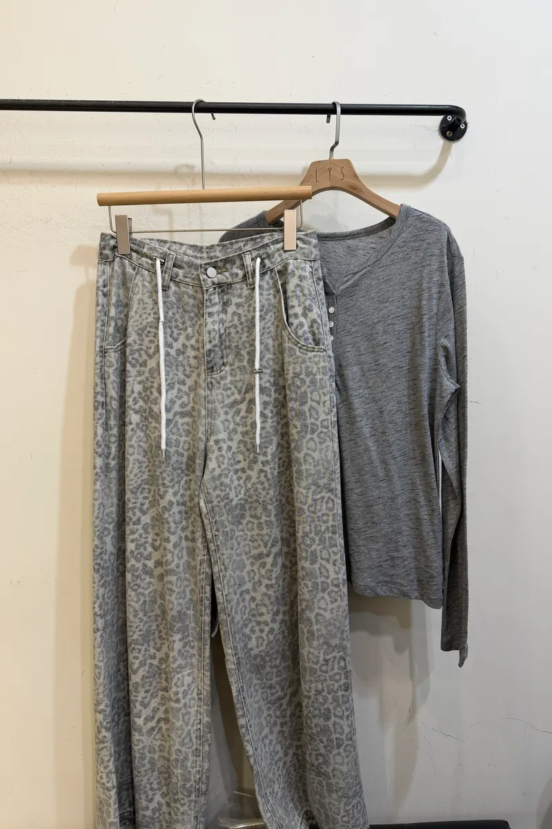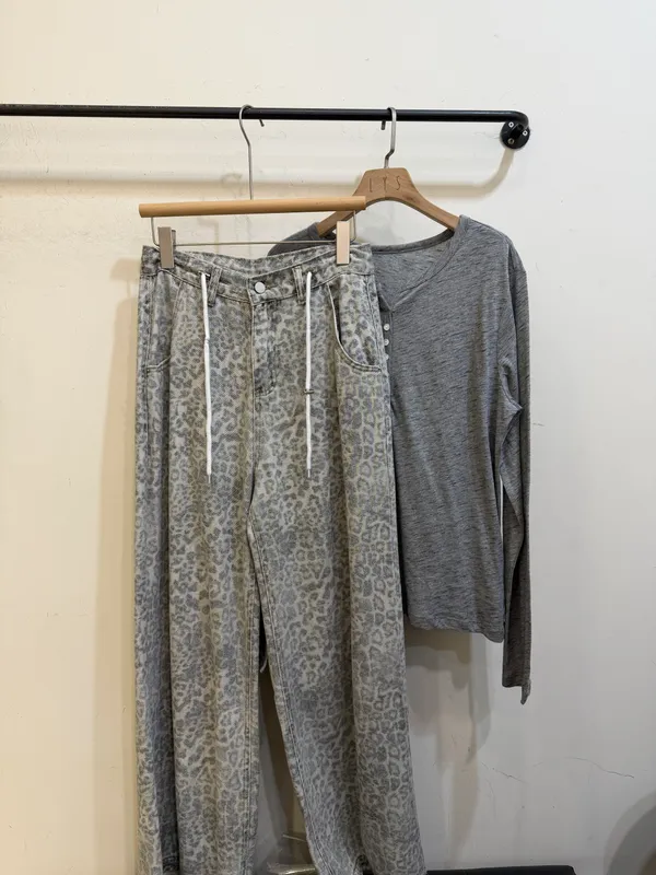 斑駁抽繩豹紋牛仔褲