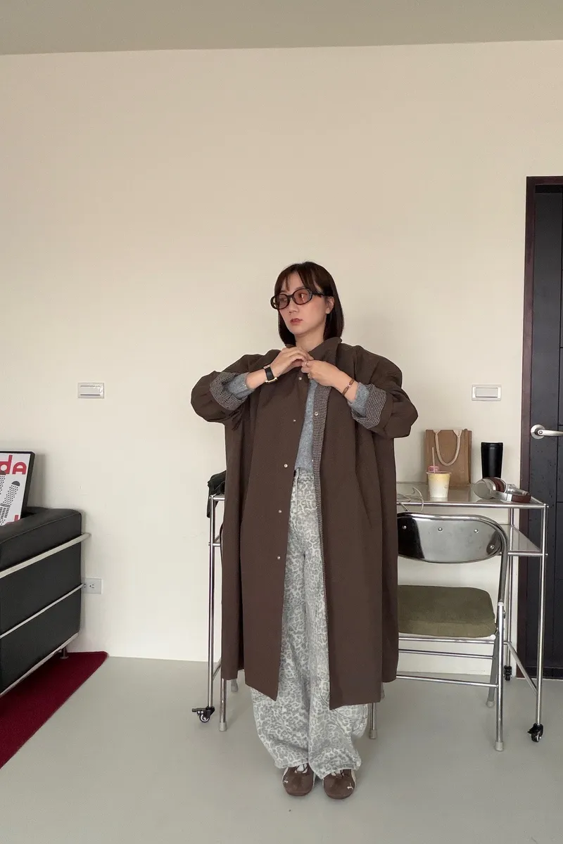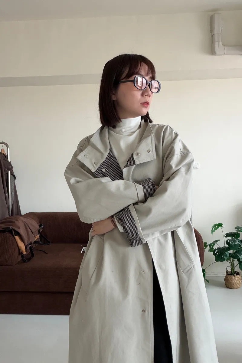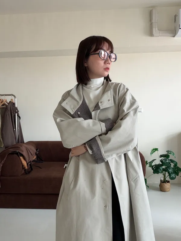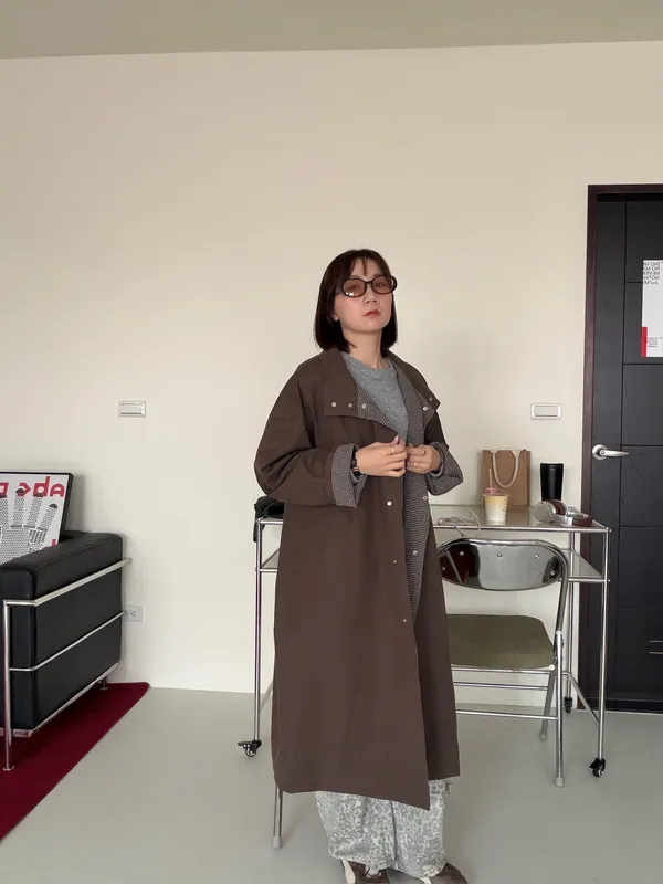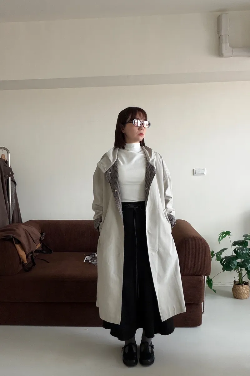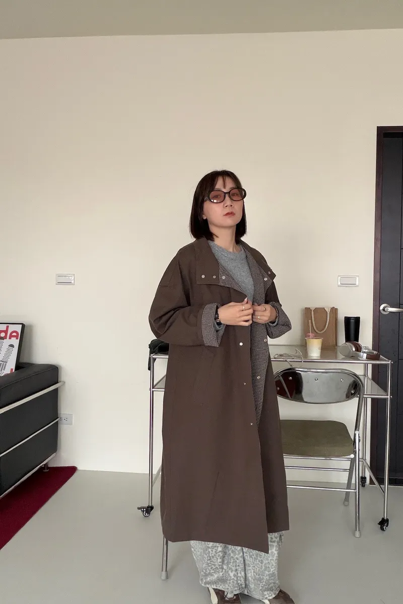 格紋手袖鬆弛街頭感長風衣