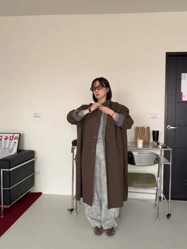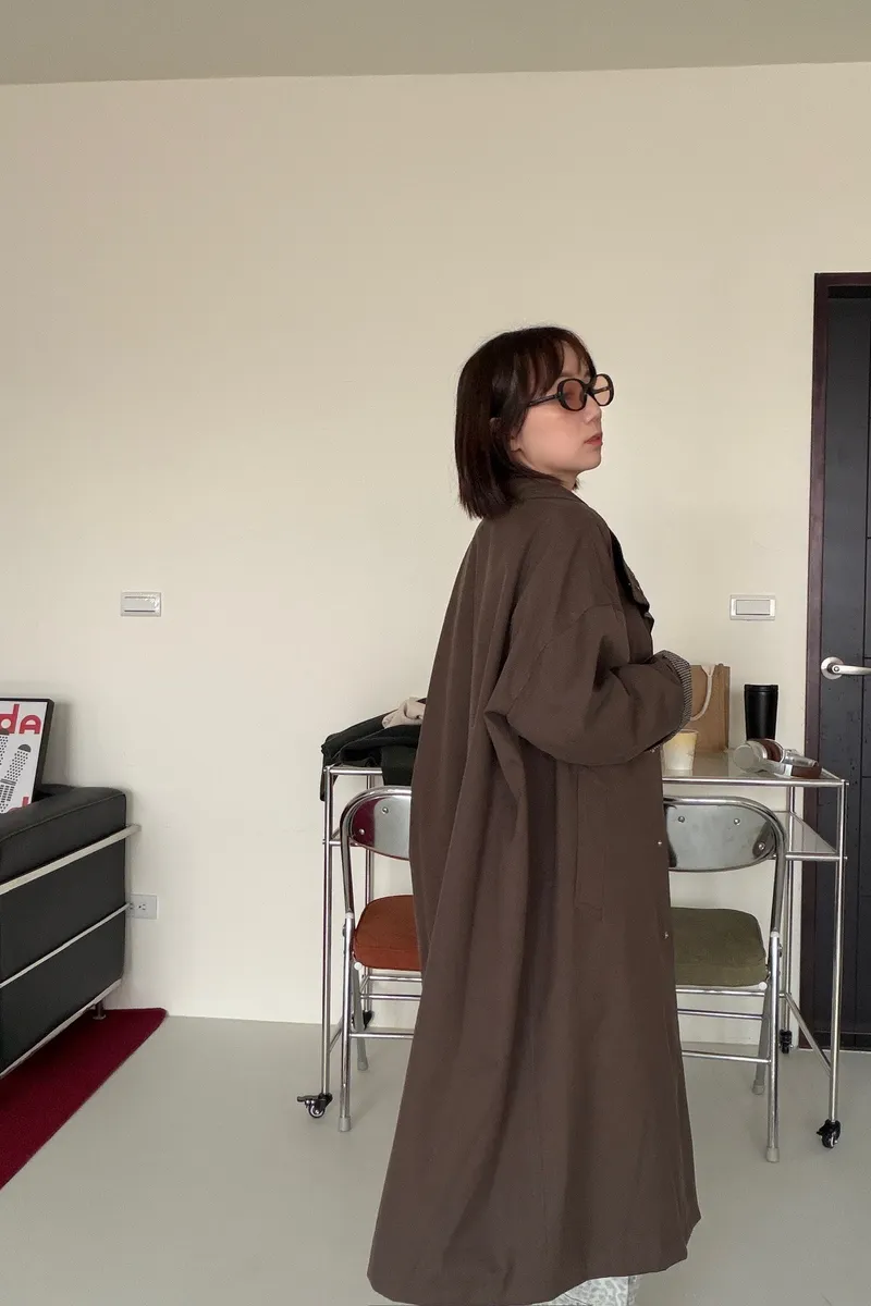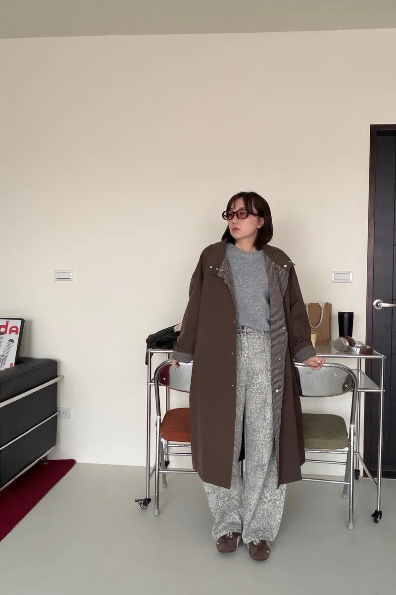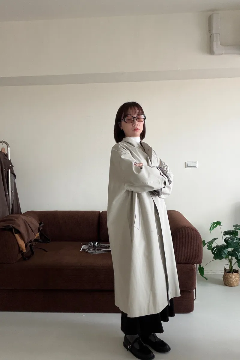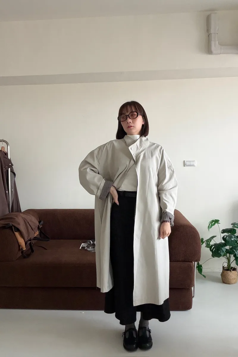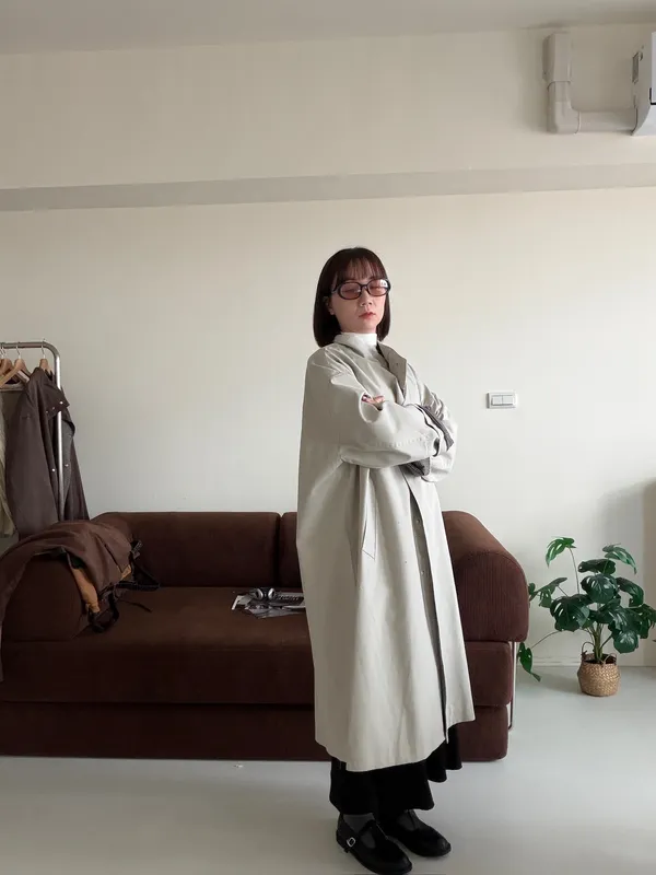 格紋手袖鬆弛街頭感長風衣