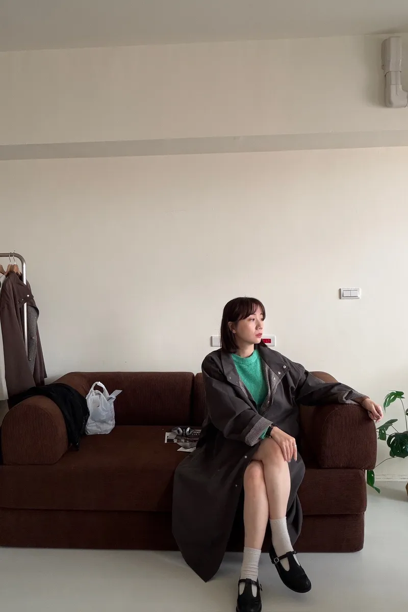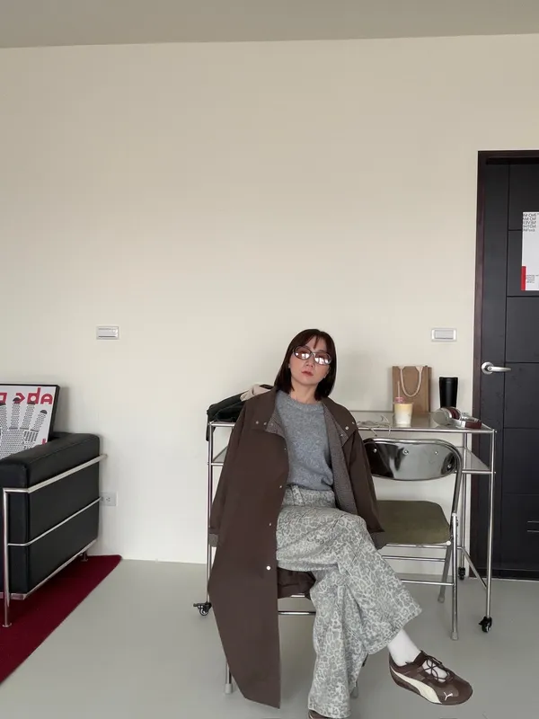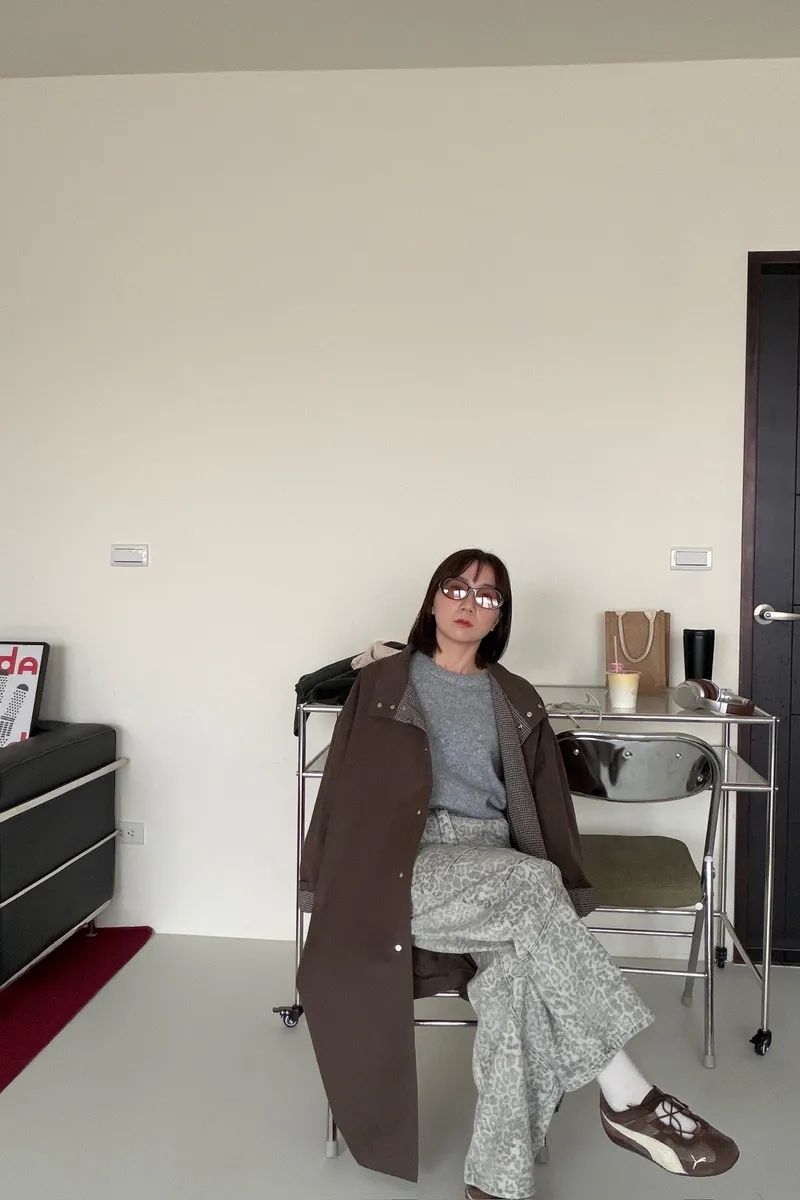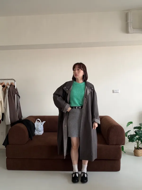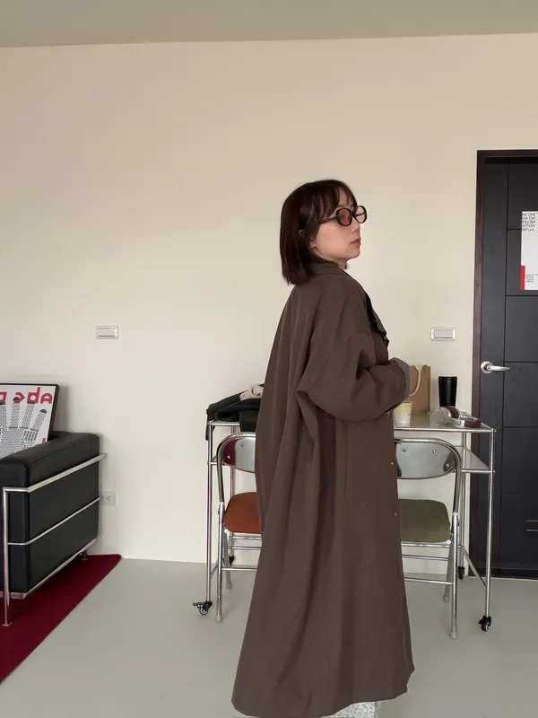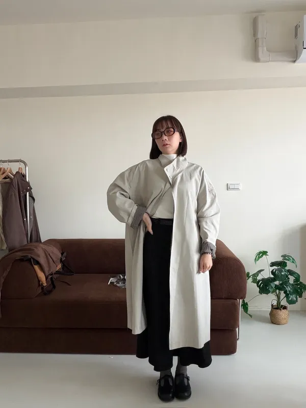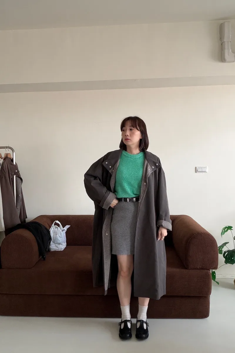 格紋手袖鬆弛街頭感長風衣