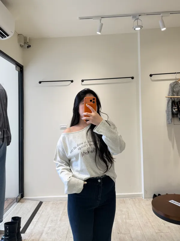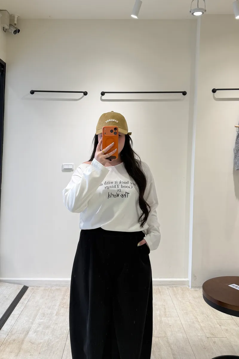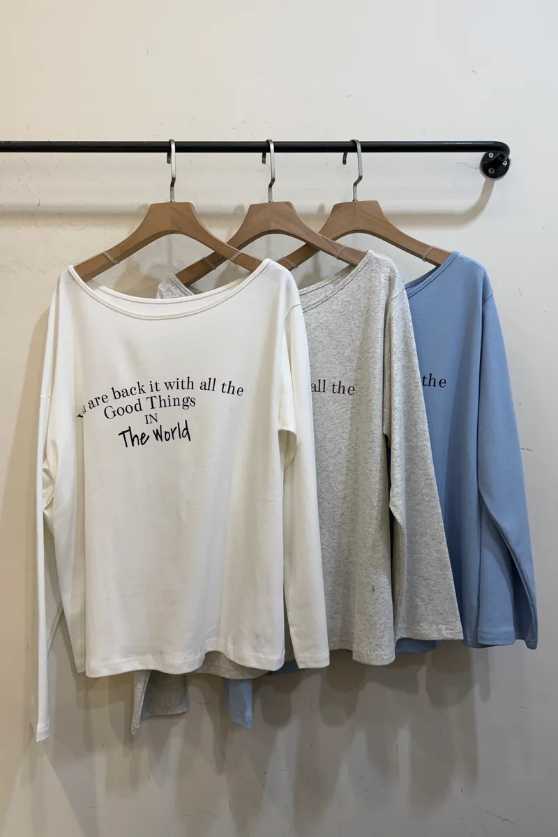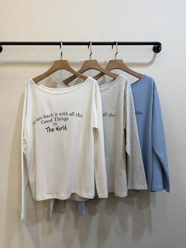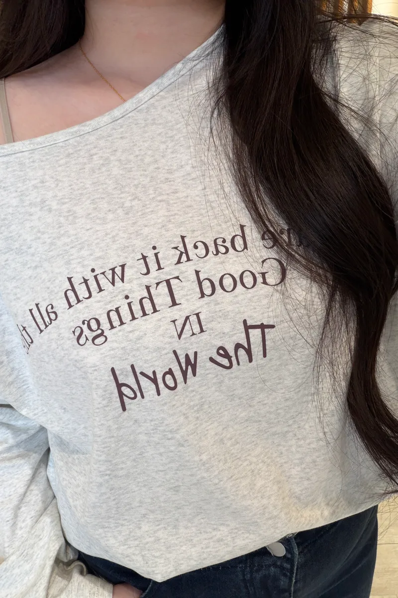 英字斜肩萊卡棉T