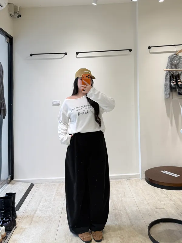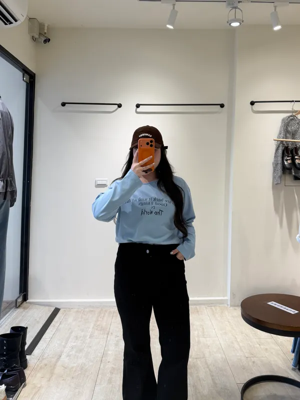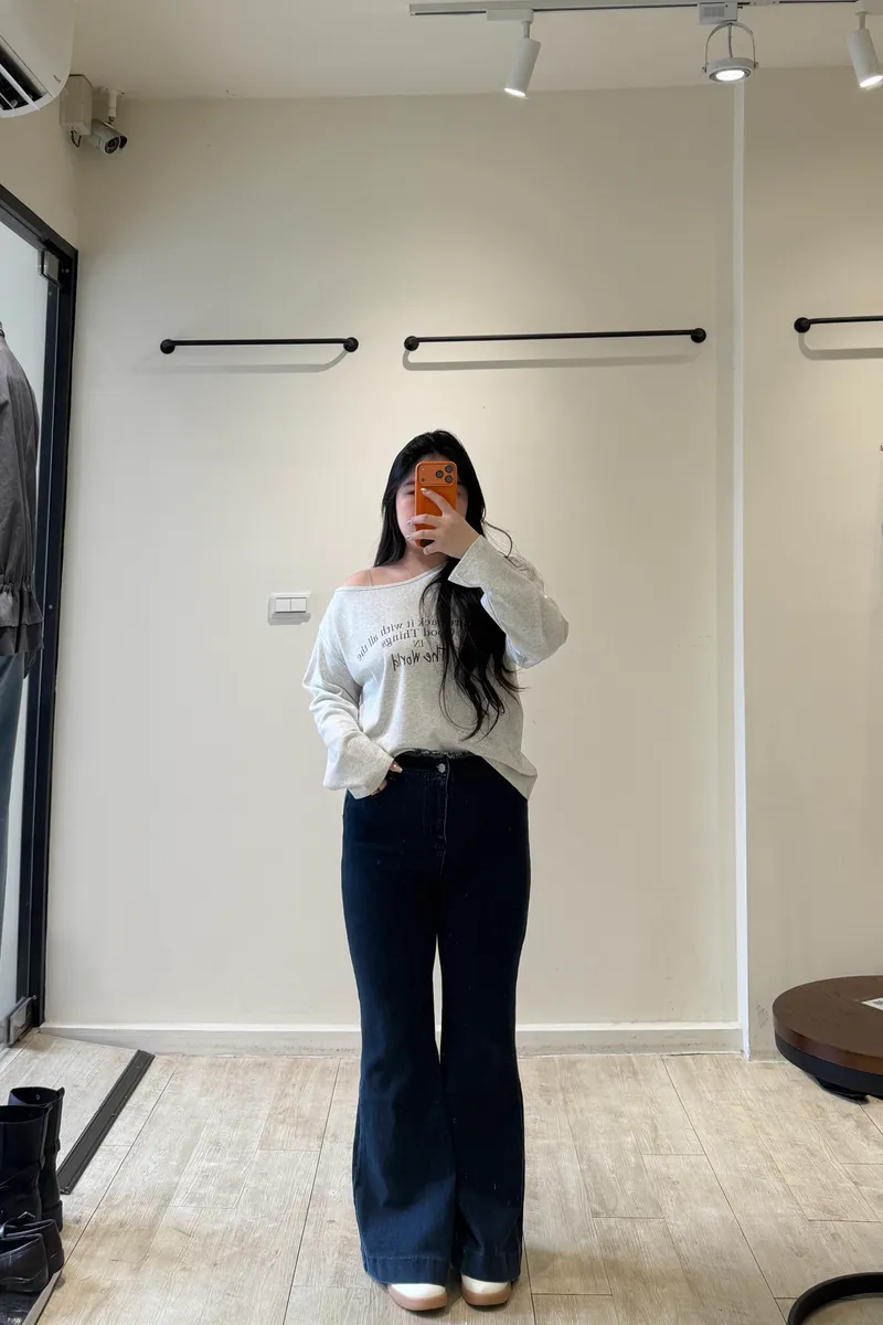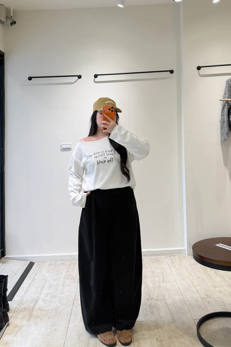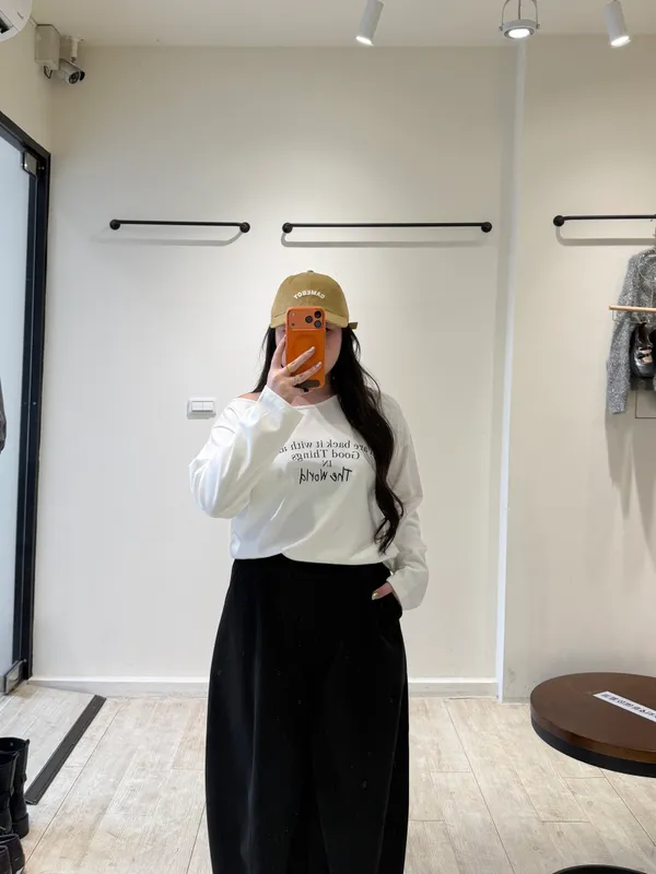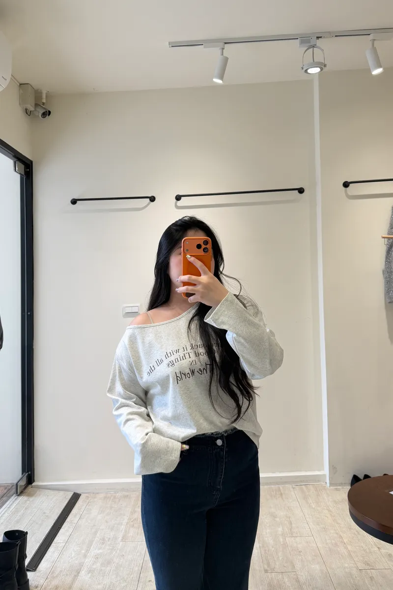 英字斜肩萊卡棉T