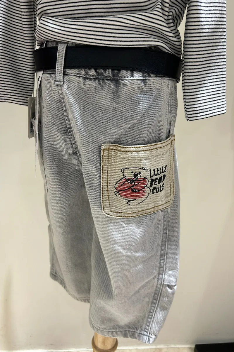 後口袋熊熊牛仔褲