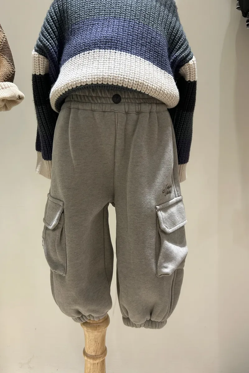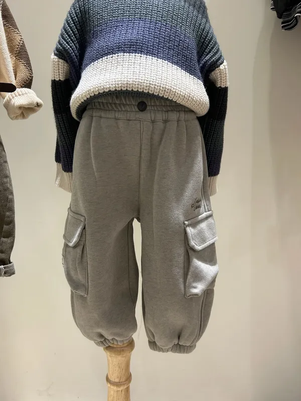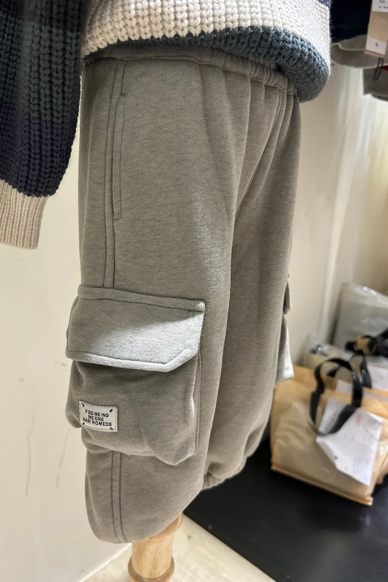 英字刺繡工裝棉褲