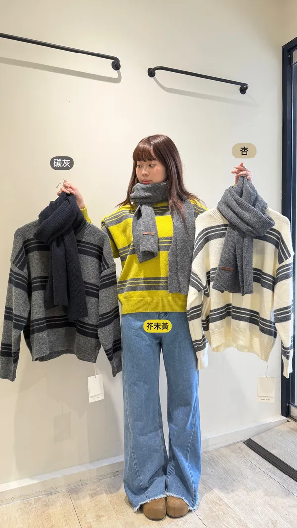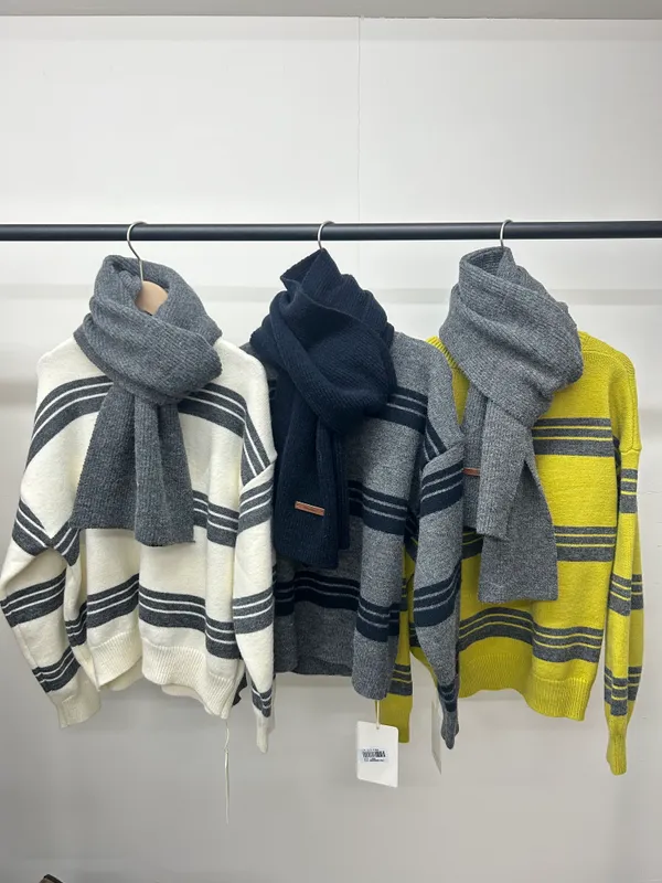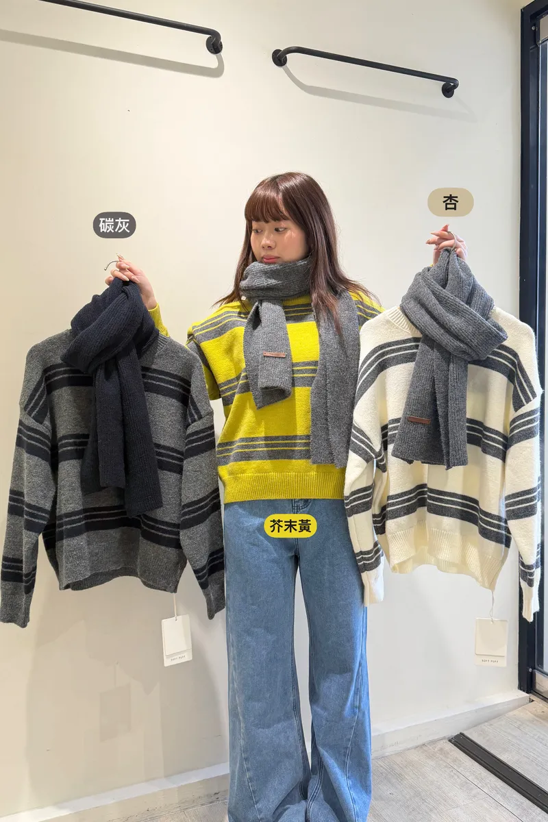 條紋拼接圍巾毛衣