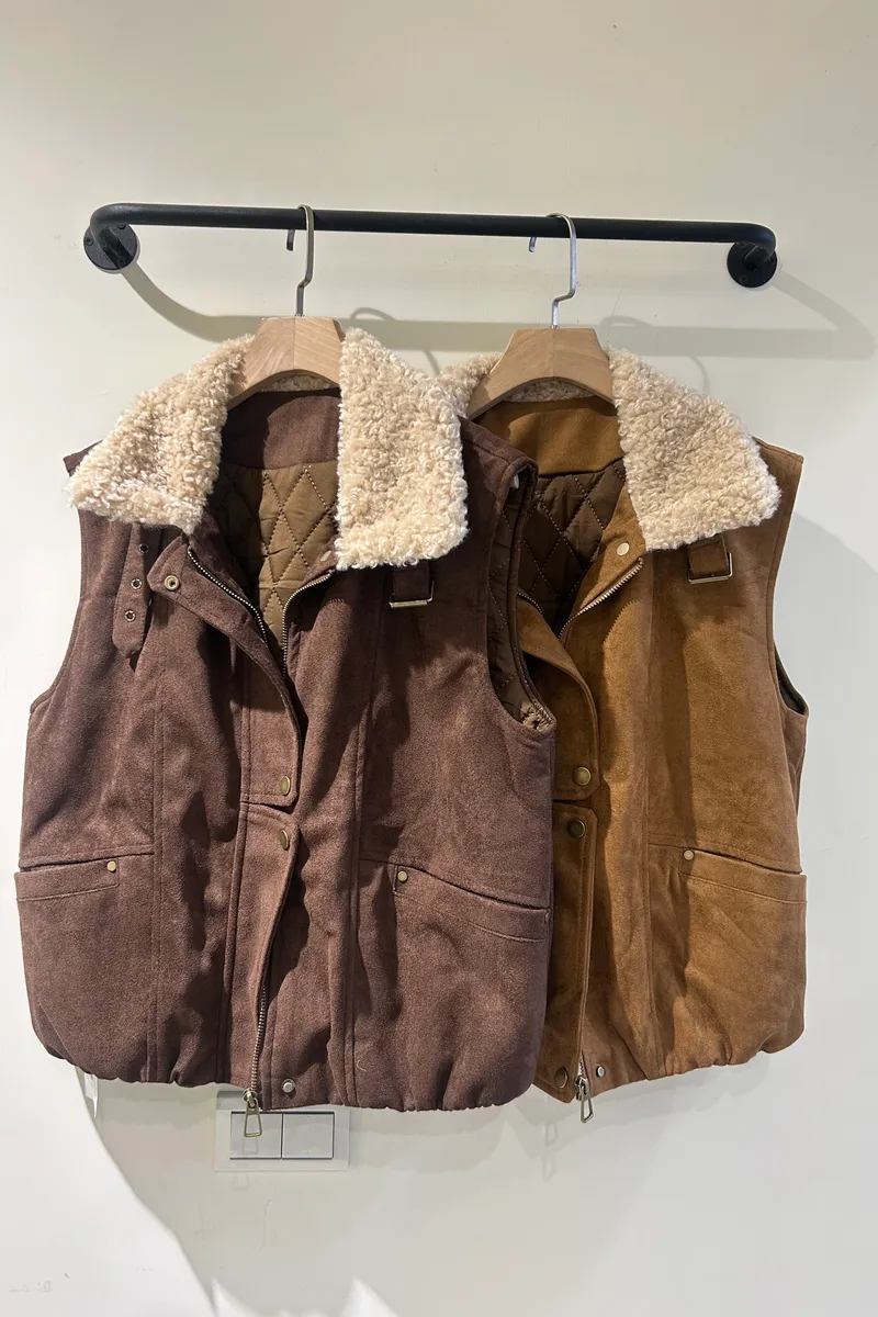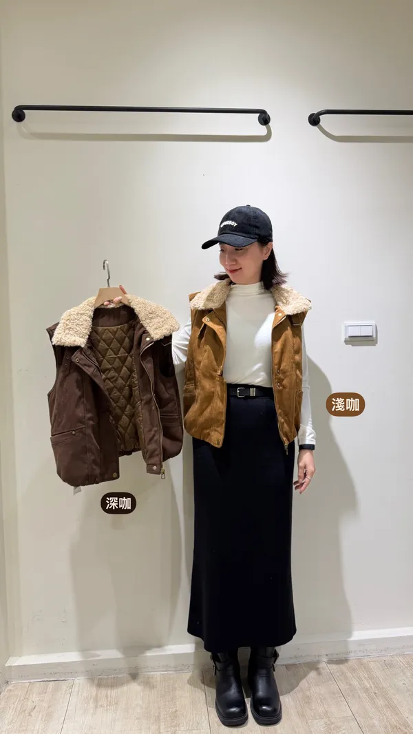 領毛毛麂皮背心