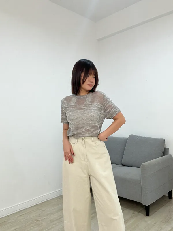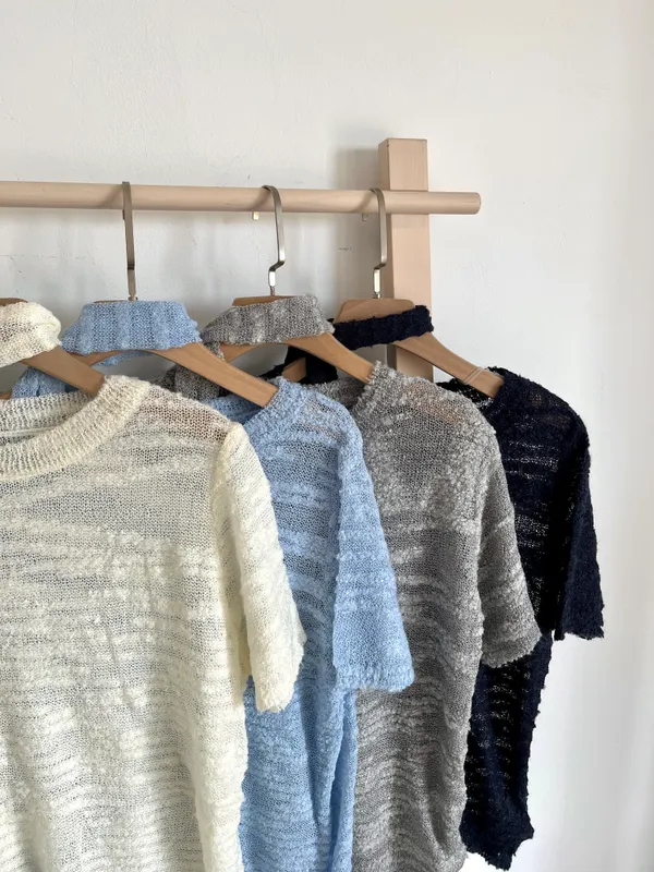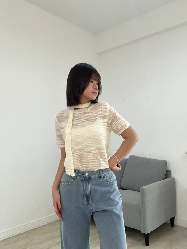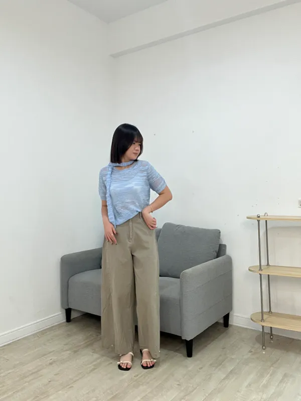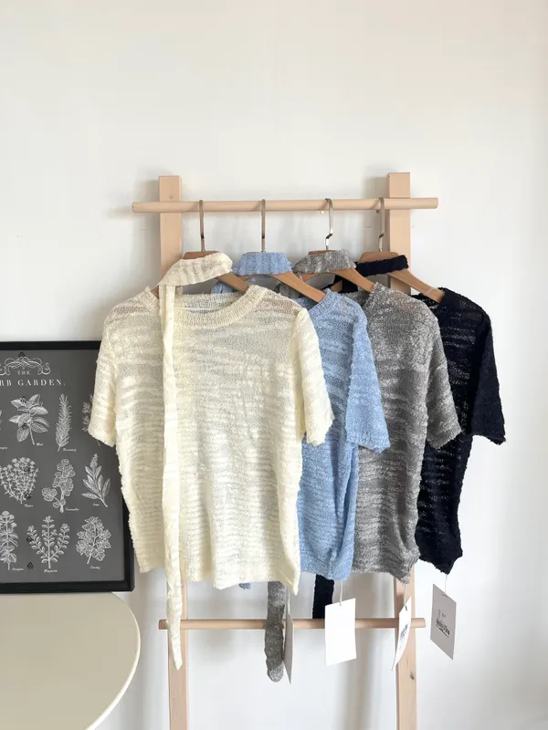 圈圈紗脖帶針織上衣