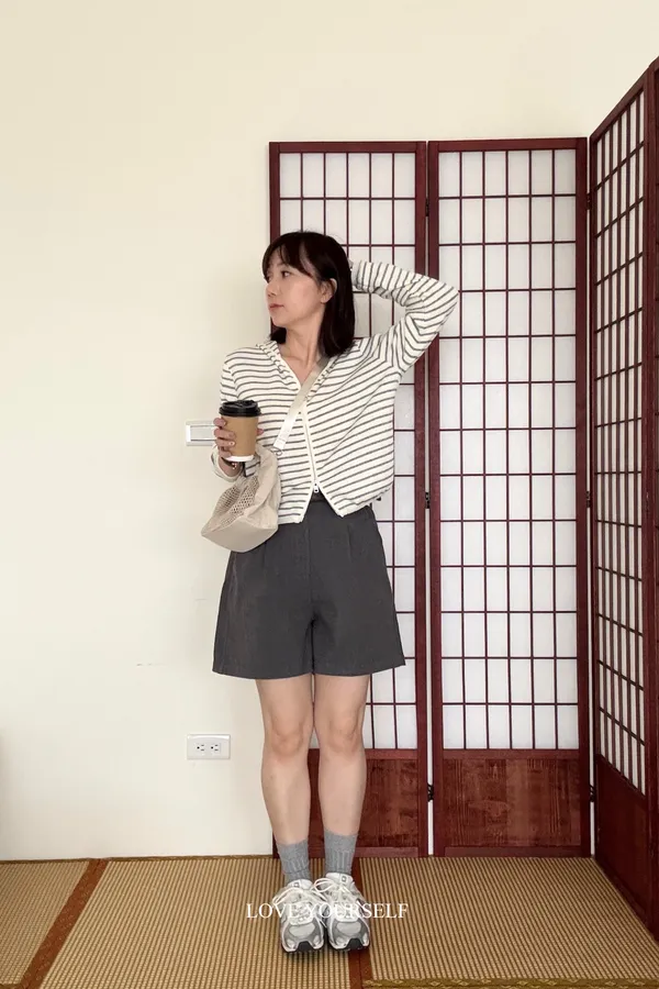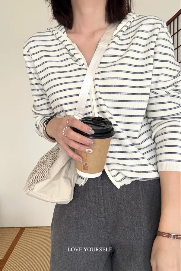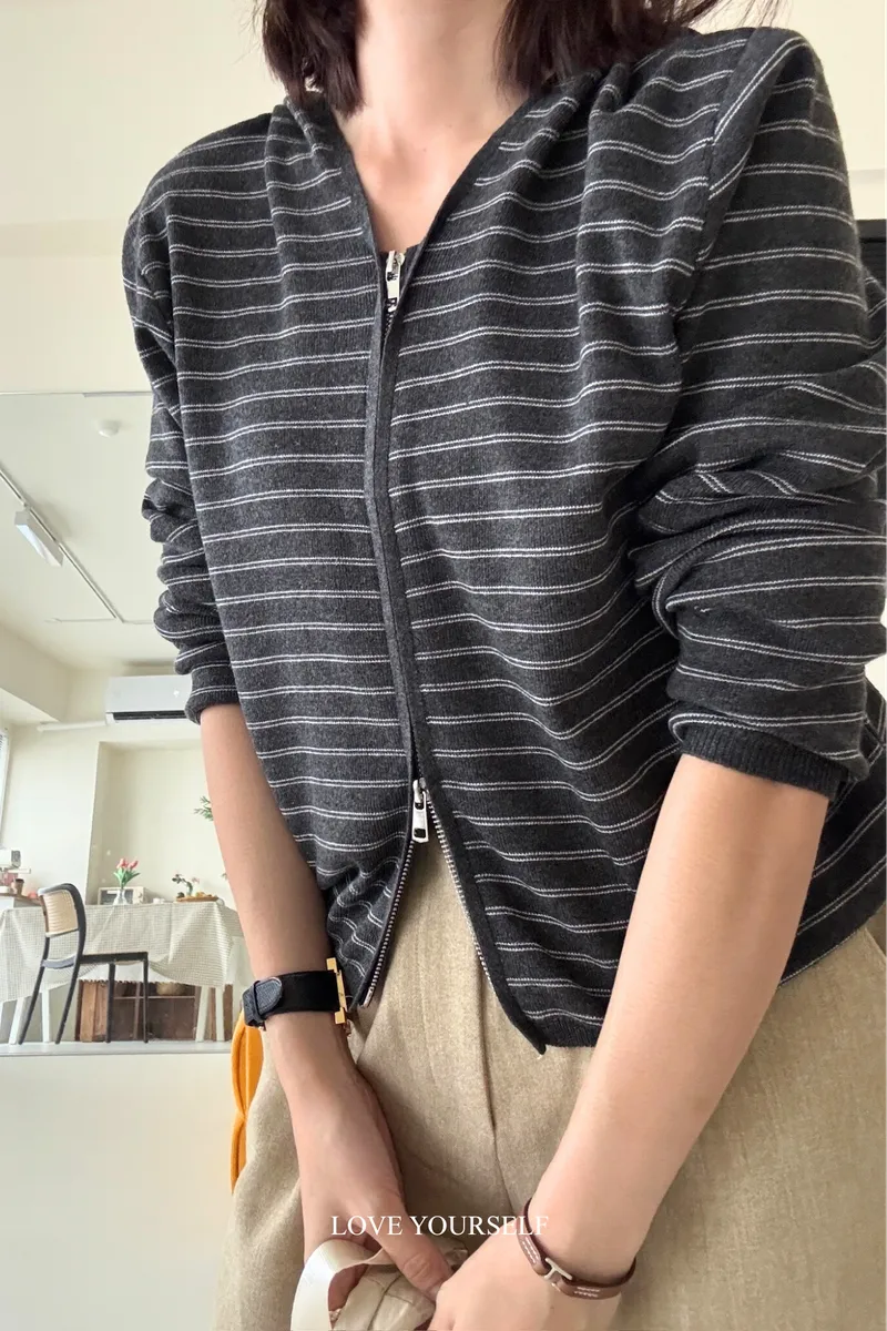 親膚羊絨條紋開衫